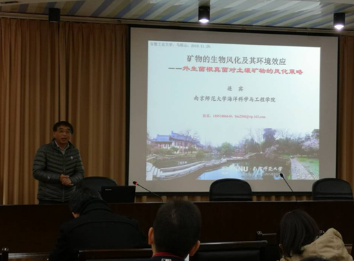 11月28日上午,南京师范大学海洋科学与工程学院连宾教授,应邀来学院做题为“矿物的生物风化及其环境效应”的学术报告。报告会由海洋之神590线路检测中心副经理盛广宏主持,相关学科教师、研究生和本科生聆听了报告。报告以矿物的生物风化及其环境效应为主题,围绕外生菌根真菌对土壤矿物的风化策略,探讨了微生物作用下土壤矿物风化的主要过程与机制以及所伴随的相关元素的环境地球化学行为和效应。最后连宾教授和与会师生就相关热点问题进行了讨论。